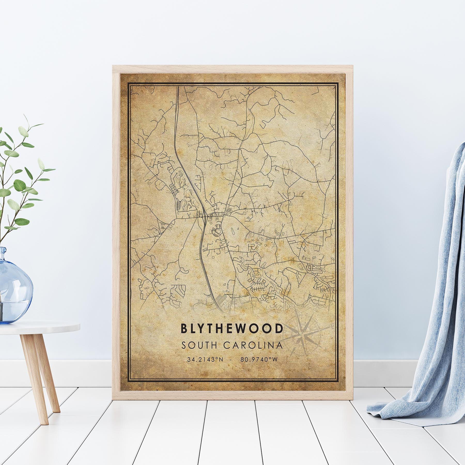 Blythewood, South Carolina Vintage City Map Print | City Streets